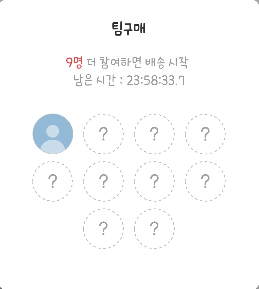 | ㆍ팀 구매를 할 때 아무리 한 사람이 많은 양을 구입하고 싶어도 다른 사람이 같이 구입하지 않으면 구입 불가 ㆍ지인들끼리 공동구매하려고 링크로 모았는데 다른 사람이 나의 공동구매에 참여해서 지인들이 정작 참여를 못하는 경우 발생 ㆍ내가 공유 링크를 배포한 지인이 내 공동구매에 참여했는지 확인 불가 |