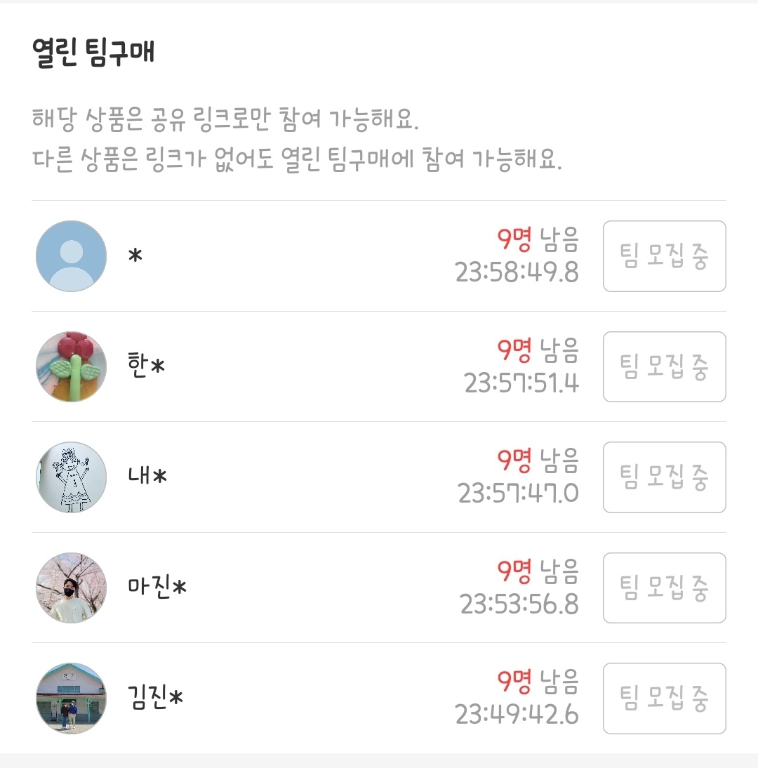 ㆍ지인들끼리 공동구매하려고 링크로 모았는데 다른 사람이 나의 공동구매에 참여해서 지인들이 정작 참여를 못하는 경우 발생