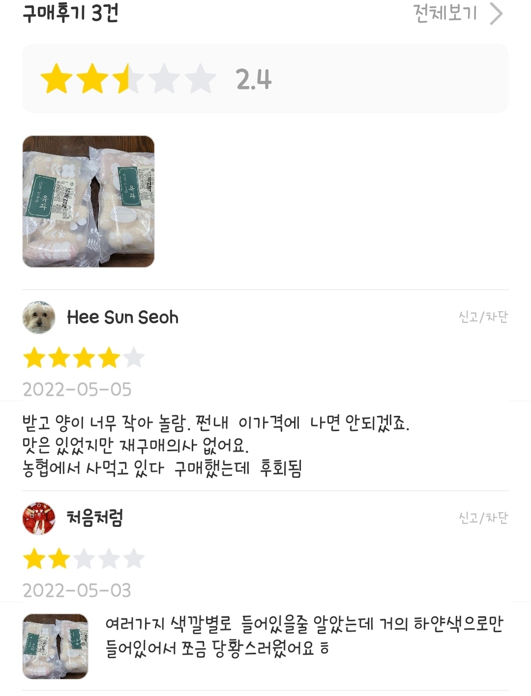 | ㆍ가격만 다른 동일한 상품일지라도 개별 결제해야 함 ㆍ같은 페이지 내에 1종류의 상품만 결제 가능(ex 1kg 한 개, 1.5kg 2개 구입하고 싶을 때 동시 선택 불가, 각각 별개로 결제해야 함) ㆍ(아마도)합배송 불가 |