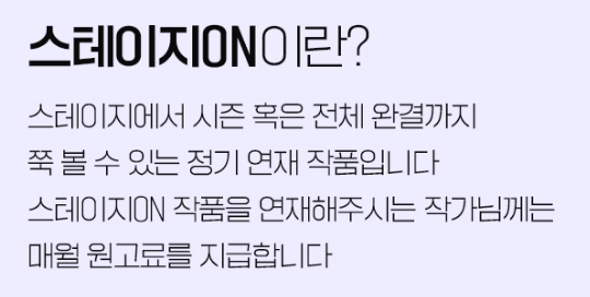 [+]하지만 카카오페이지는 좋은 작품들은 선별해서 계속해서 완결까지 연재할 수 있도록 시스템을 '스테이지 On'이라는 추가적인 서비스를 바탕으로 구축하고 있네요.