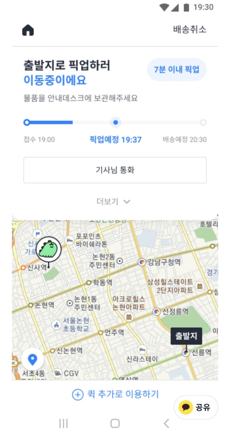 기존에 퀵 서비스를 중심으로 배송을 하던 기사 외에 배달을 하던 기사 분들도 추가적인 수익 창출을 위해 이용할 거라고 생각됩니다.