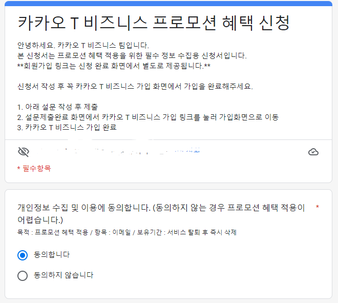 ㆍ기업 고객-(카카오 T 비즈니스로 연계)프로모션 신청 웹페이지, 상담원 배정