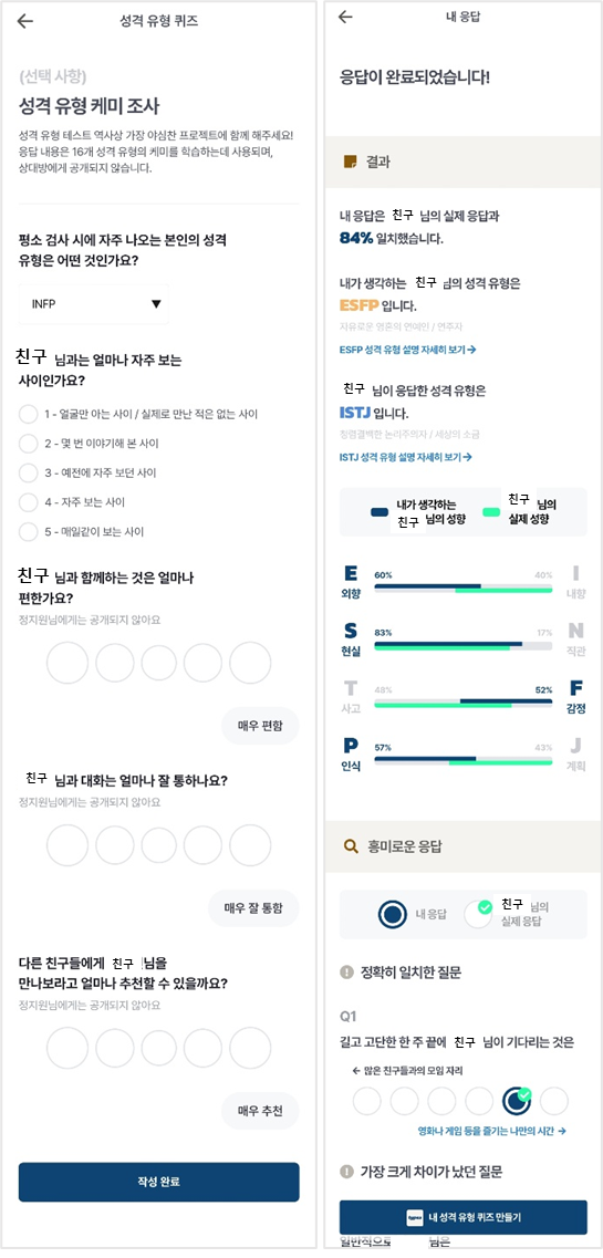 - 메인카피: 성격 유형 케미 조사