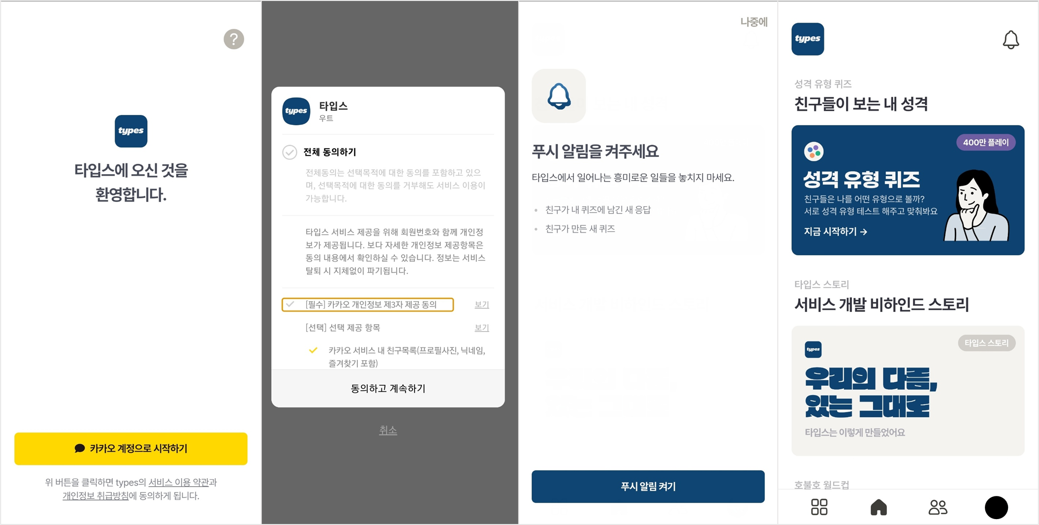 - 메인카피: 타입스에 오신 것을 환영합니다.