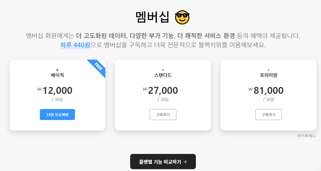 일단 블랙키위는 전에 분석했던 썸트렌드와 비슷하게 대부분의 서비스가 무료로 제공되고 있습니다. 그렇기 때문에 사용자들이 상당히 자유롭게 사용할 수 있습니다.