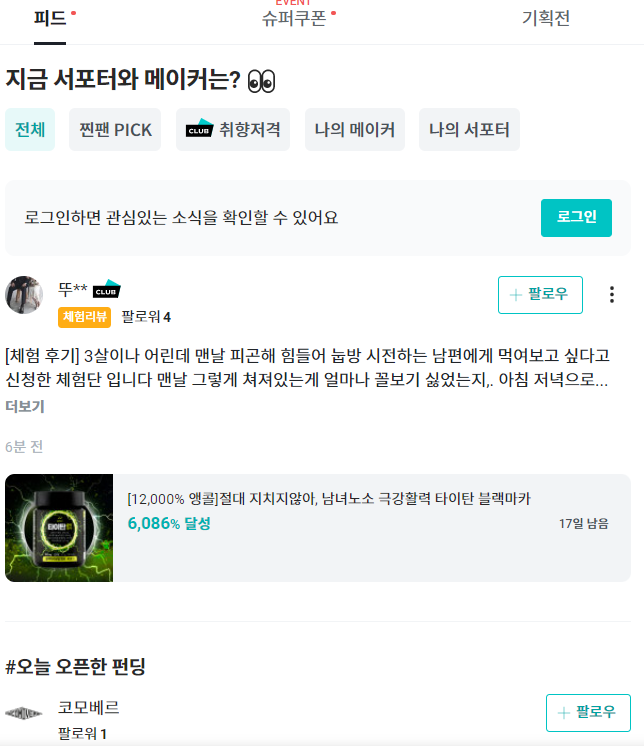 특정 메이커를 팔로우한 서포터가, 팔로우를 한 이후에