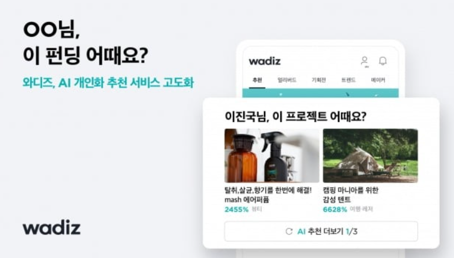 와디즈, 펀딩 적중률 높인다···AI 개인화 추천 서비스 고도화