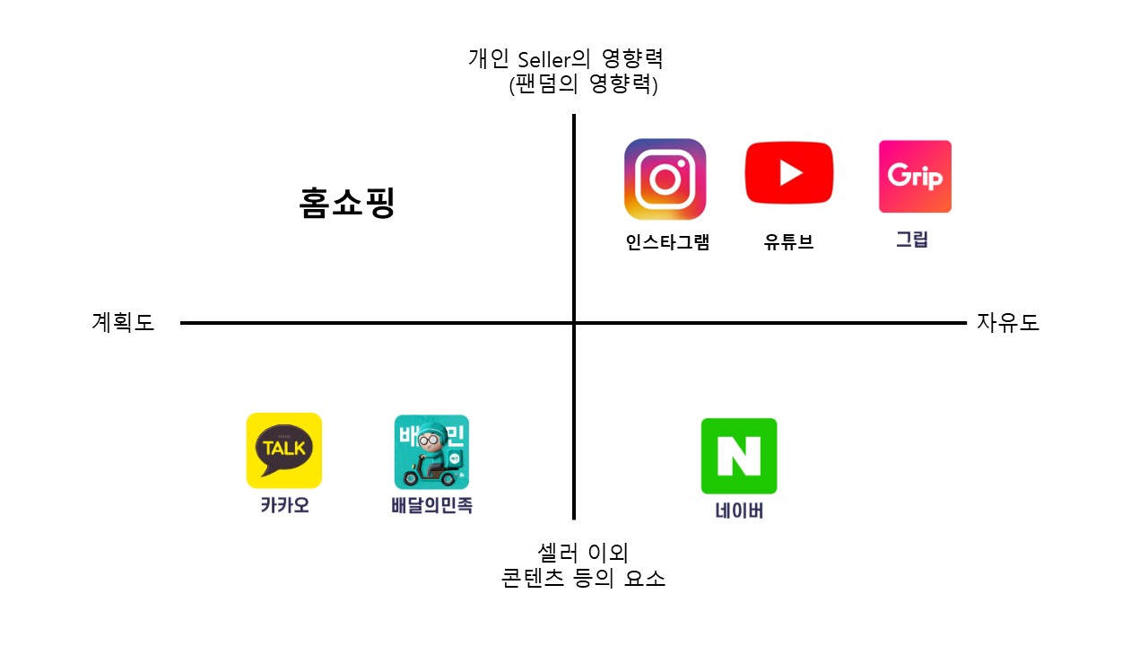 마지막은 방송에서 물건을 판매하는 사람의 영향력도 높고, 철저히 계획 하에 연출된 모습만을 보여주는 홈쇼핑 쪽의 라이브 방송도 있습니다. 엄밀히 말해서 '라이브커머스' 쪽은 아니지만 홈쇼핑도 영상을 보고 제품을 구매하게 된다는 점에서 경쟁사로 제시해보았습니다. 쇼호스트 개인이 커다란 팬덤을 갖고 있어서 제품 판매에 큰 영향을 주는 편이고, 아시다시피 홈쇼핑 방송은 전문적으로 기획되고 연출된 모습을 보여주잖아요.